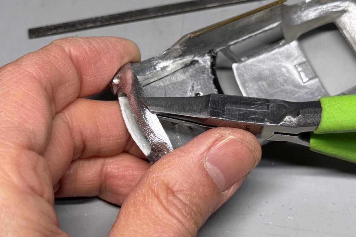 メタルを完全に溶かし込んでボディと一体化しておけば、整形後もこんな感じで曲げたり伸ばしたり、内に巻き込んだりといった微調整が可能になります。