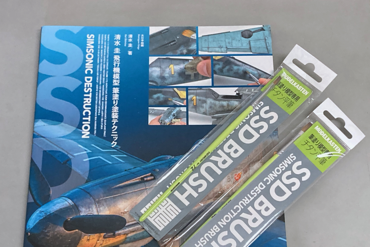 あとはモデルカステンブースで実演もされていた清水圭さんのSSDブラシ。弾力としなやかさにこだわった化繊の筆で、チタンを練り込むことで溶剤の耐久性も増しているそうです。