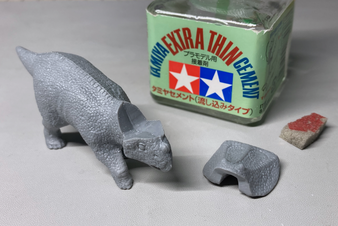 あと、タミヤブースの体験コーナーで稼働していた射出整形機から、打ち立てホヤホヤのカスモサウルスを頂いてきました。