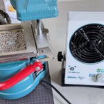 リアウインドウは湾曲が強くて深さがあり、ヒートプレスで強く引っぱると薄く強度不足になりがちなので、昔に購入したバキュームフォーマーで絞り出してみます。隣にある見慣れない送風ファンは、「Spolehli 静電気除去ミニファン フィルター付き 除電器 イオナイザー」