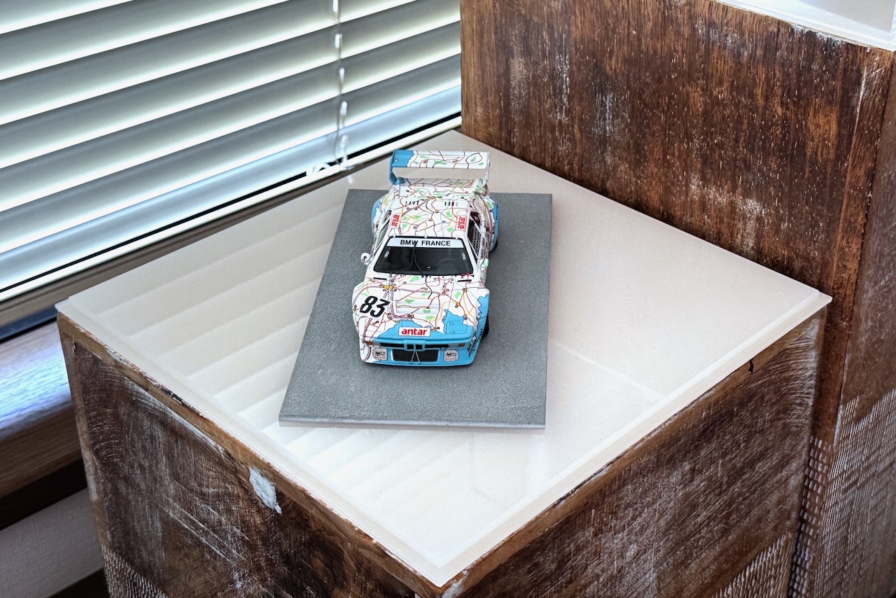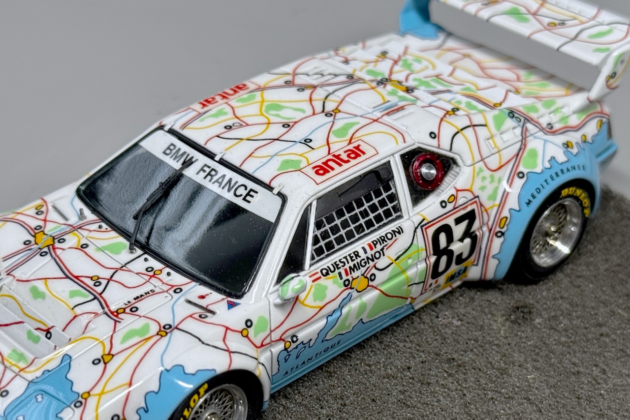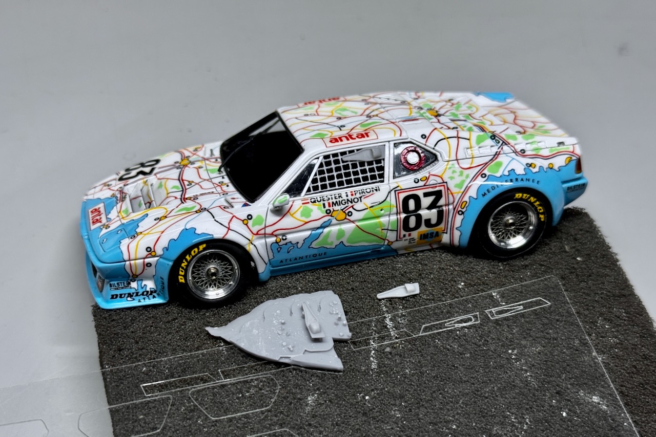 BAYMOのBMW M1″フランス地図”、背が高すぎるリアウイングを修正し、小物パーツを金属素材や3Dプリンターで自作し、昨日ようやく完成しました。